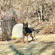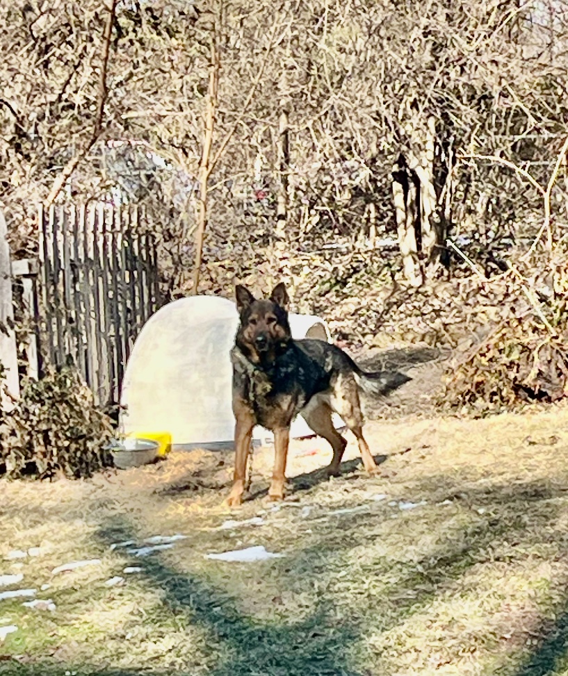 Large, German Shepherd, male, black, brown and tan in color. He has a collar and ID tag.