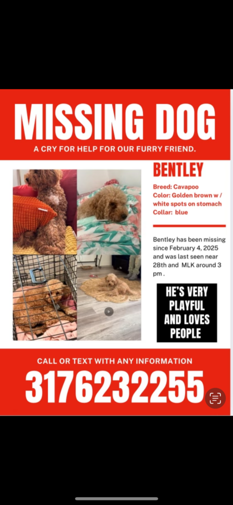Lost Dog, Alert #82834 Bentley missing near Mlk&Clifton St, Indpls, In46207