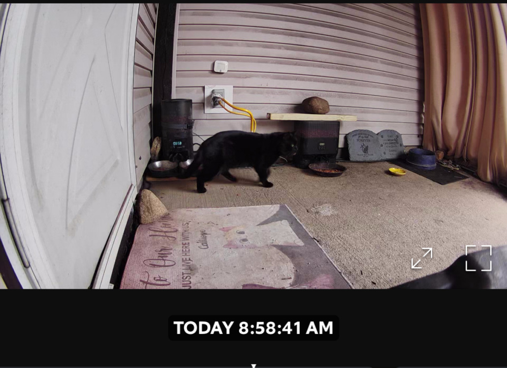 Black male cat about 8-9 lbs. unfixed. Blue or green eyes. Likes other cats. Seems friendly. Hanging out with other community cats and staying in cold weather outside shelter.