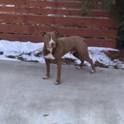 Male pitbull brown with white chest, intact