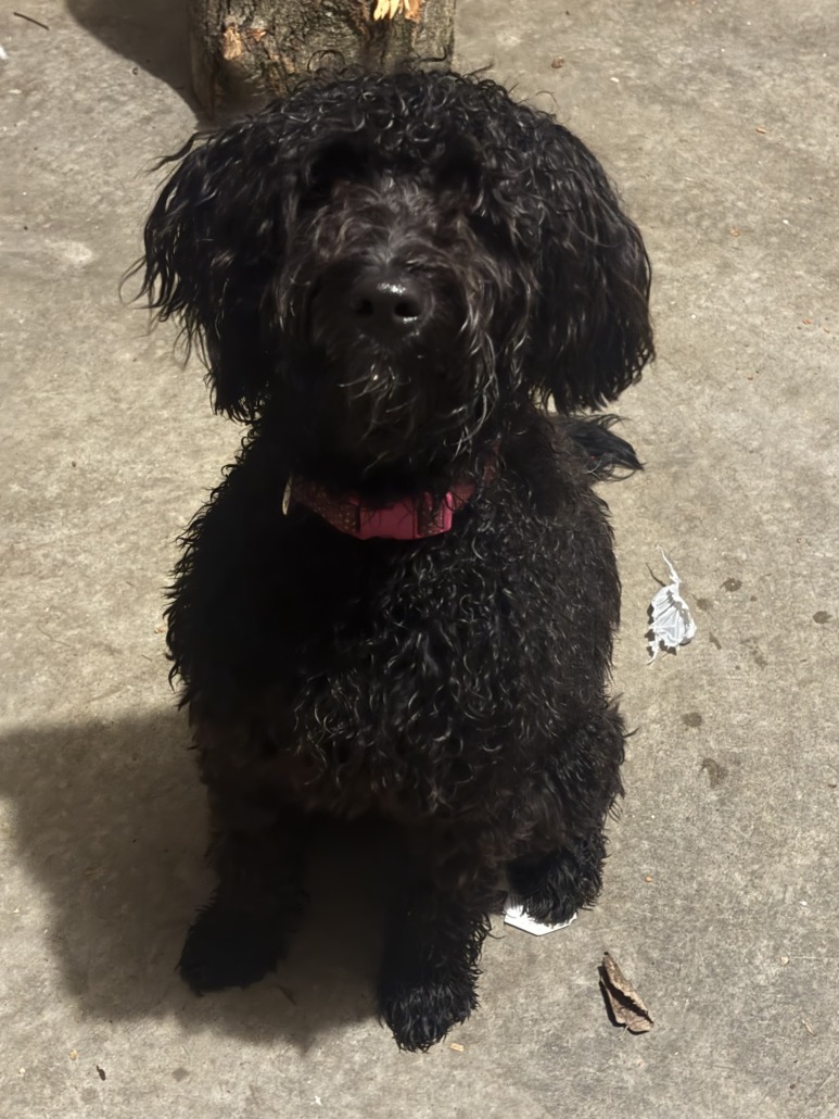 This dog was found running around with what we assume is a sibling. They were in the Eagle Crossing Neighborhood and are friendly. They were soaking wet from playing in the nature trail and creek so we brought home. We have other dogs so these guys are in our garage for the night