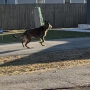 German Shepard. Roaming the streets. Seemed friendly but also wouldn’t come near me. Big dog with collar