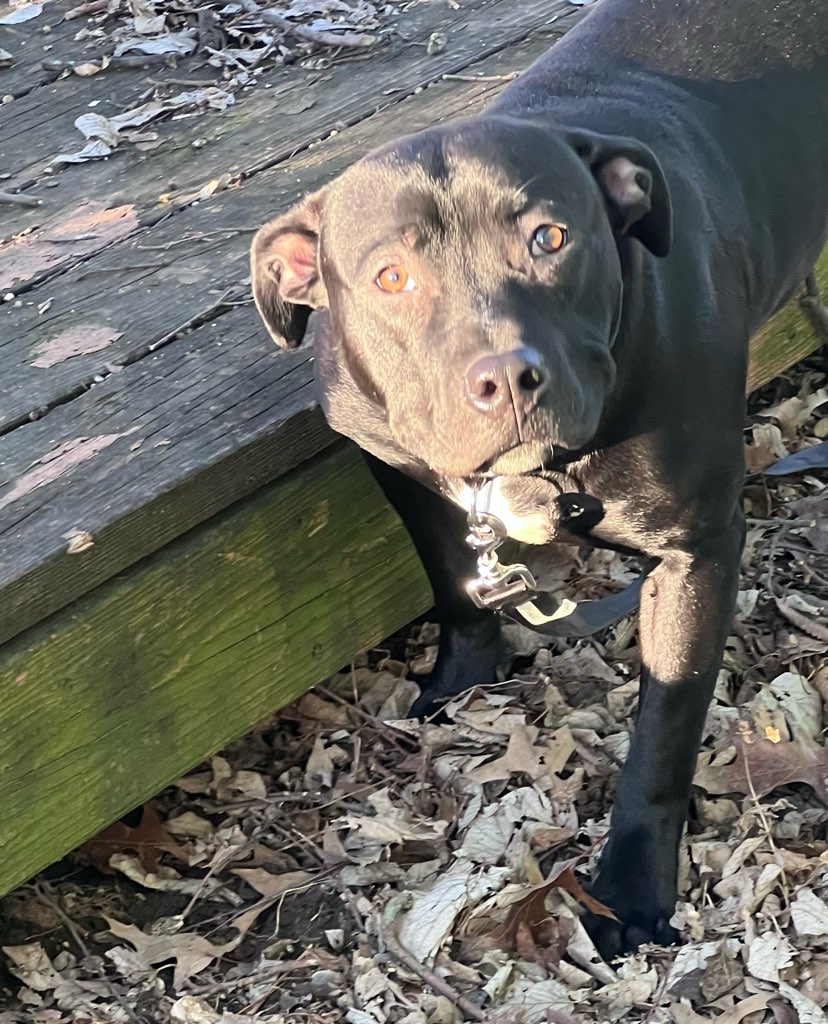 Was hanging around my back door last night when I had my dog out after dinner. My little guy is a chihuahua and of course started barking (to protect me) so I pulled him in quickly and figured the black dog would go elsewhere. He/she was still there this morning when we went out. Seems friendly. No growling or barking. Keeps sticking the nose in each time I opened the door to try to get in. I had to leave for work, so distracted him/her with some larger treats. The dog followed me to my car and hopped up like it wanted a car ride. I told it it couldn’t come with me, so it went back to my back door. Not sure why it’s attracted to my area since there’s no food or anything interesting out there. Since there’s a leash and collar I’m guessing this one has a home. If it’s still there when I get home and continues to approach without being threatening, I’ll try to get close enough to see if there’s a tag.