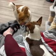 Found two mixed Pom and Russel terrier