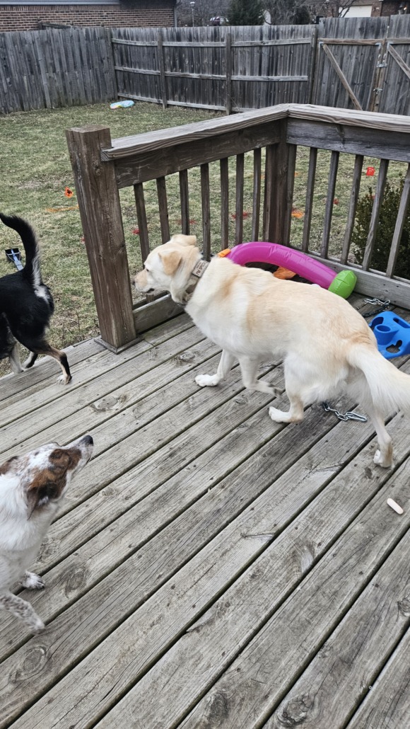 He was in the street and playing frogger so he’s safe in my backyard.