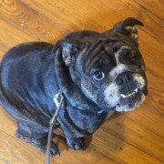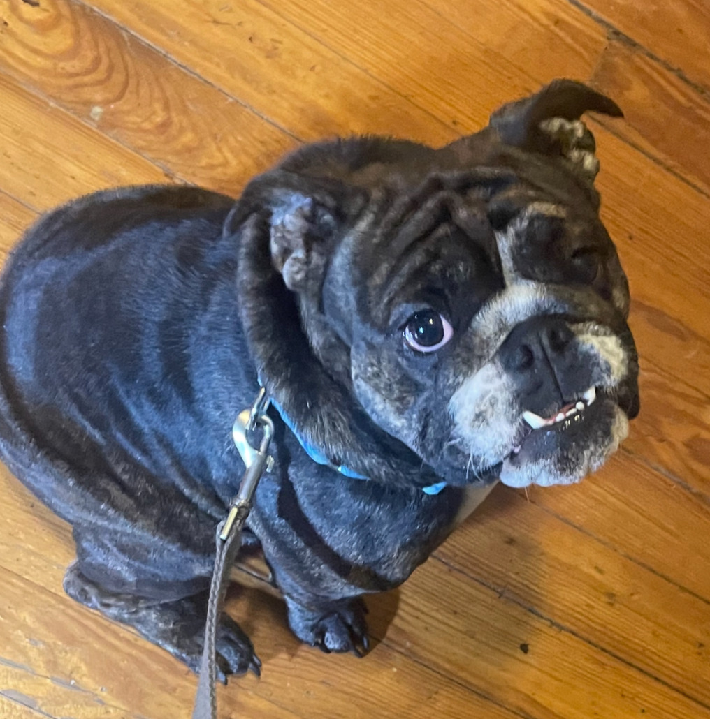 Appears to be a Bulldog or Bulldog mix. Guessing 2-4 years old. Playful. Proof of ownership is required.