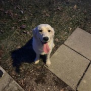 Energetic golden retriever. Obviously an indoor dog and well taken care of.