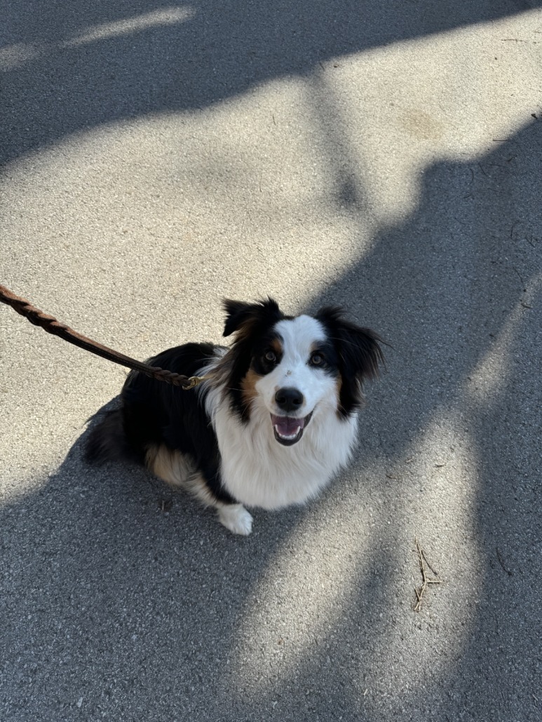 Tri color Australian shepherd. Very sweet and friendly. Currently providing food, water and shelter for this dog. Contact me if this is your dog or you know who the owner is. Proof of ownership is required for you to get the dog.