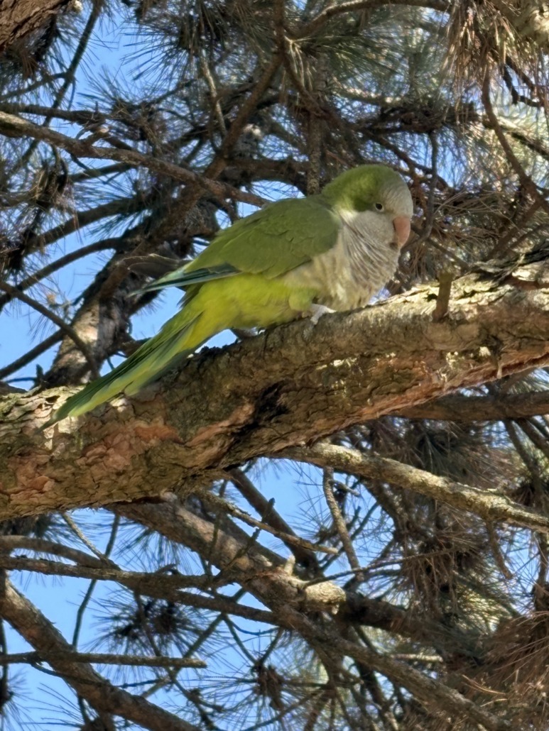 Found a parakeet/parrot outside in my front lawn in a tree. Won’t come down when trying to call for him/her