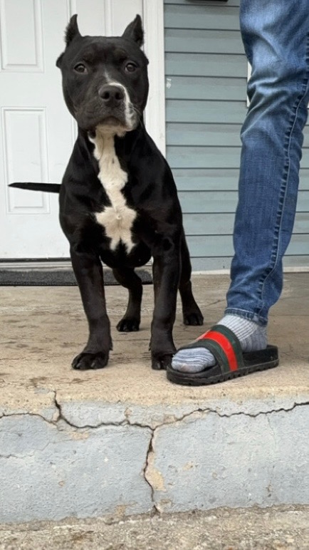 Coco is black an white dogs ears are short she’s friendly an not that big she listens when u call her name coco