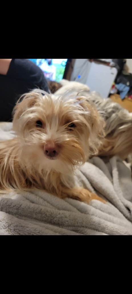 She’s a blonde yorkie around 5 or so pounds needs a hair cut was not wearing her collar. She isn’t used to people or anything really . She may come if you call her please don’t chase her .