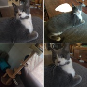 She’s about a year old and was rescued from the street when it got to be freezing temperatures a couple of months ago. She’s definitely happy to be a house cat. She’s a bit shy and skittish at first but very sweet with an adorable meow. She’s ok with other cats, although she’s still a kitten and loves to play so my middle-aged cat gets annoyed.