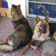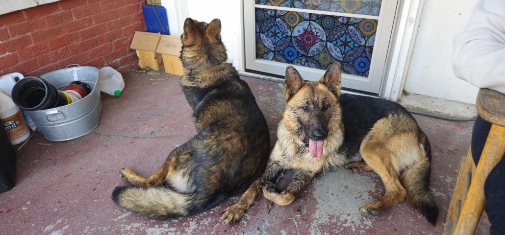 2 German Shepherds roaming together, male and female