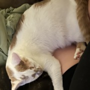 ryder is white with orange tabby spots on his back and on his face. he is very timid, he probably won’t come to you.