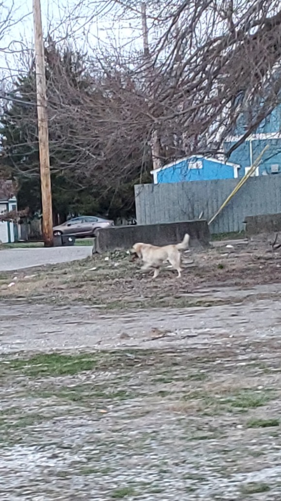 Golden Retriever / Lab male doggo with collar, couldn’t catch him.