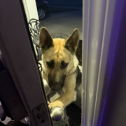 Shepard with a leash. Posted on ring. Posted yesterday a woman said it followed her home. Posted again today that it was seen dragging a leash near the park.