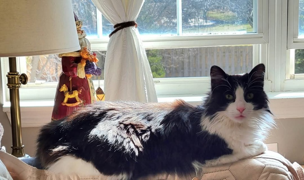 Pete is a medium to long hair domestic, black with some white, neutered male kitty. He is a bit older, and he does not have front claws. He has only ever been an indoor kitty, but he is nowhere to be found in the house or garage. The only thing we can think of is that he snuck outside when we let our pups out, but that is still not like him. Pete is very sweet and loveable but will likely be skittish if he’s scared. He is very vocal – if you see him and say Pete or Pete-Pete, he will typically “talk” back to you. He does not have a collar.