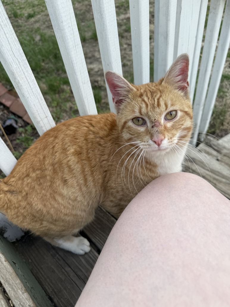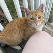 PROOF OF OWNERSHIP REQUIRED! Orange male cat, 1-3 years of age, intact. Very friendly.