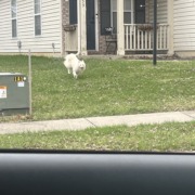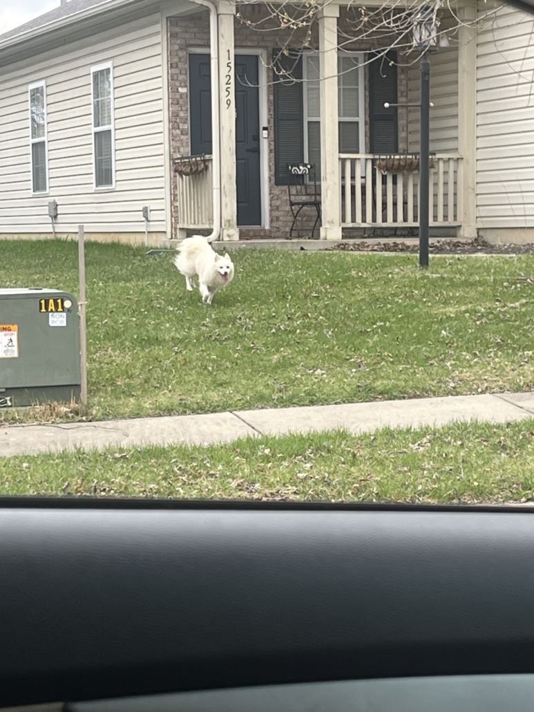 White fluffy dog, possibly American Eskimo dog seen in Deer Path neighborhood on ten point Dr near entrance off greenfield
