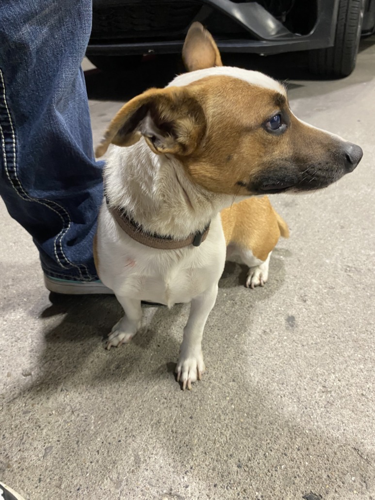 He seems to be a little blind on his right eye and he’s wearing a brown collar,