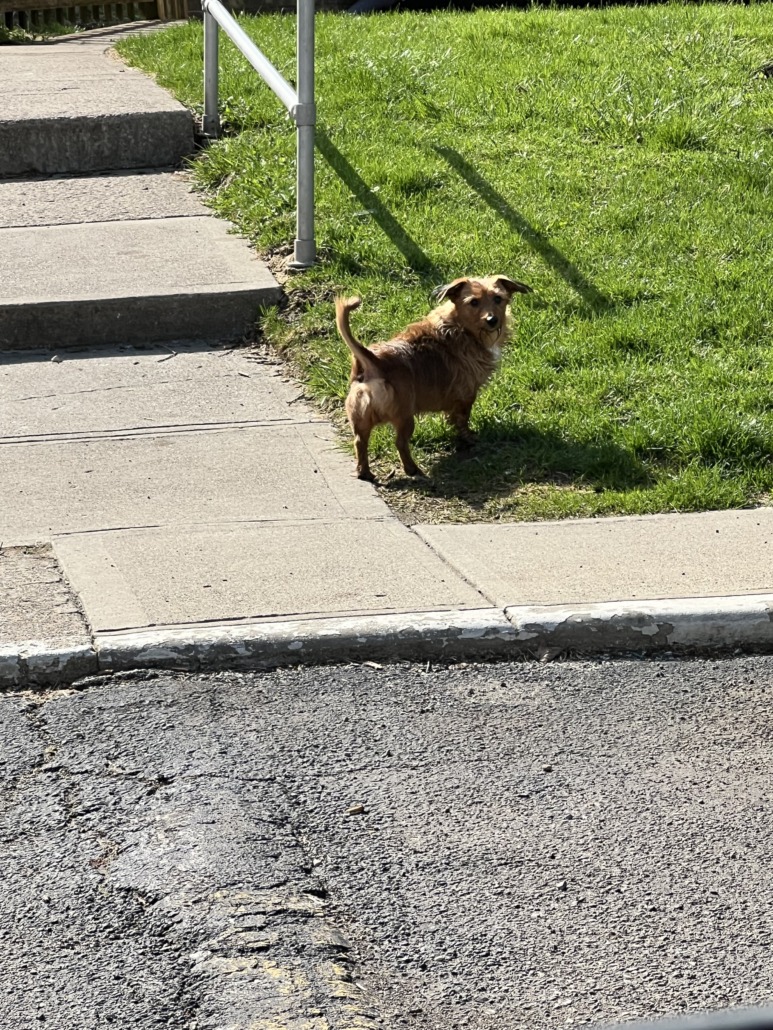 Small brown dog running around Timber Point Apartments. Sighted hear 6245 Newberry Road. Running back and forth across the street.