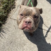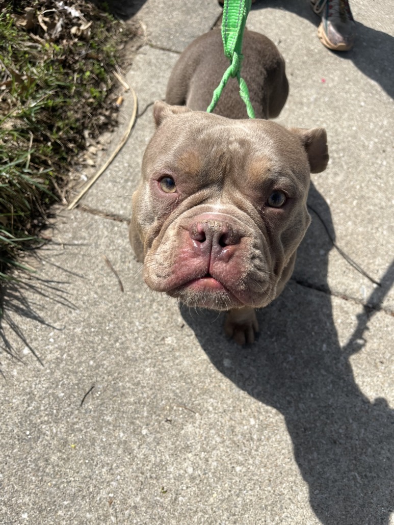 Brown tri color female bully. Skinny and has long nails and a scar on her head. She was found tied to the fence in the alley. PROOF OF OWNERSHIP REQUIRED