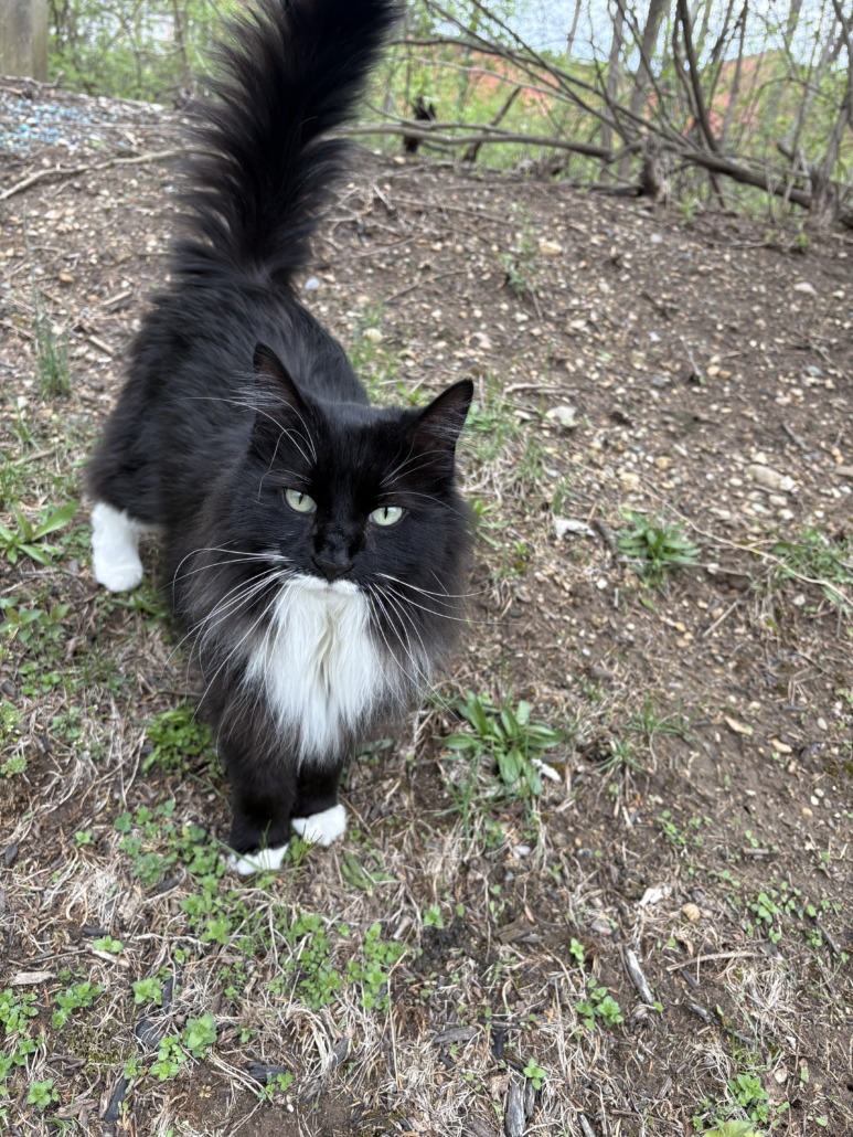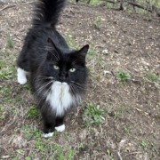 Black and white long hair feline, very sweet. Will let you pick them up, very clean. Thinking is belongs to someone. Brought in just before the bad storms at Eagle Creek Court
