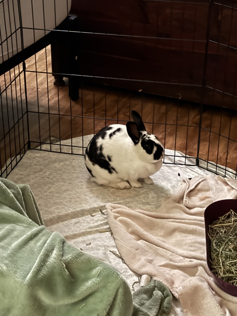 Black & white bunny – had been hanging around about a week before I managed to catch her.