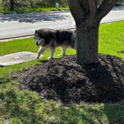 Large husky wondering around the industrial park on Corporate drive between 62nd and 71st street.
