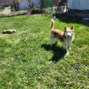 A timid red husky