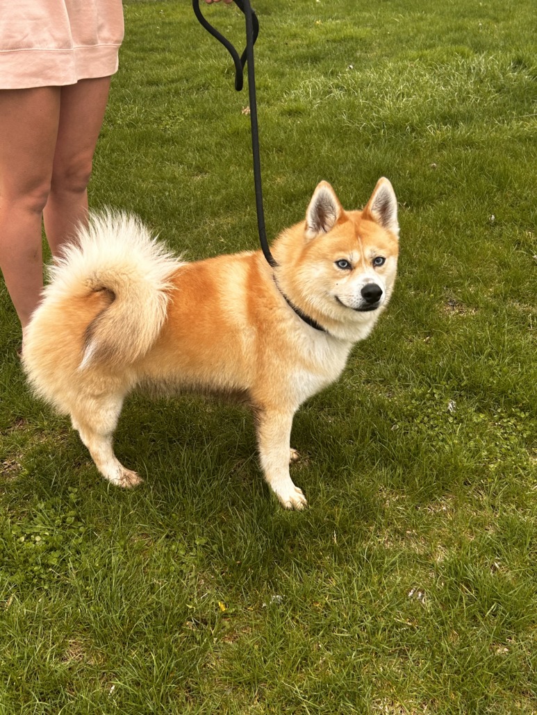 Chow, shibu emu mix, blue eyes, seems like it can’t see well and bad hips