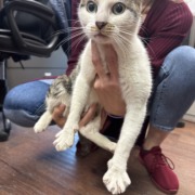 Proof of ownership is required. She is very friendly. Cat is not very old – likely less than a year old. She walked into our work warehouse while loading out installers. Did not want her to get hit. We fed her tuna and got her water. She wasn’t too hungry or thirsty. So likely is not a stray.