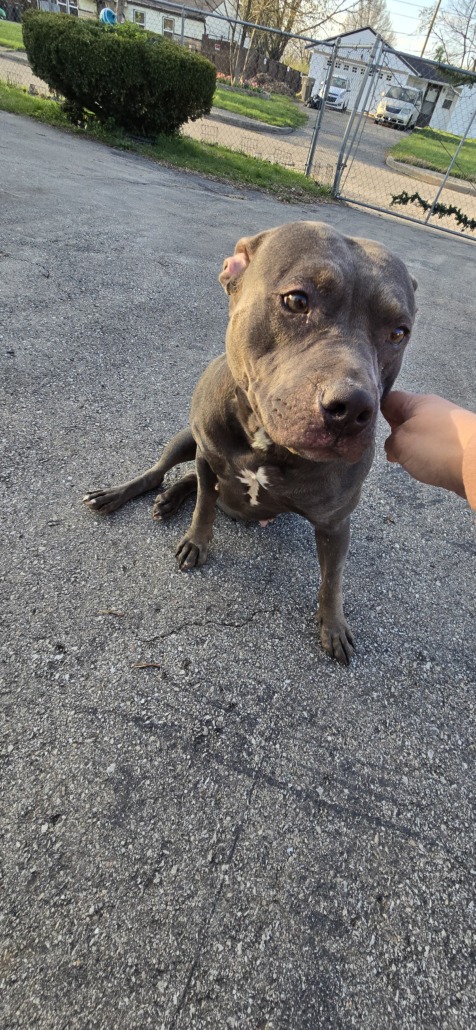 Found this sweet gray, small pittie around 42nd and Arlington ave. She has a white chest mark. She is not micro chipped or has a collar. Very sweet and playful.