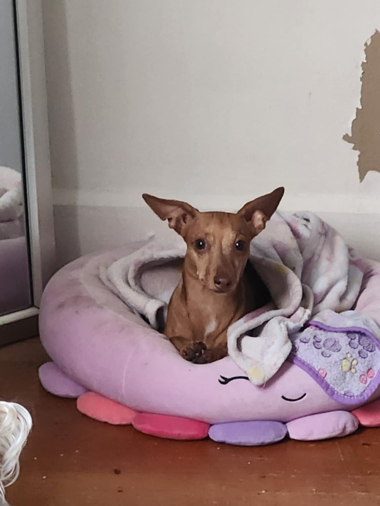 Brown, female weiner dog. Found 4/11/25 around 4pm at the back of Thompson Village Apts off Thompson & Meridian/135. Proof of ownership required.