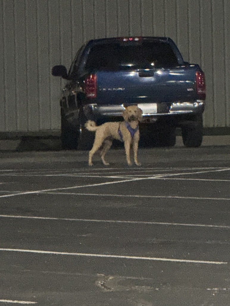 Running through the parking lot of Million Air in the Washington St (north) side of the airport. Very skittish, ran away when I called to it and approached.