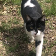 Very sweet female tuxedo, I think female. A little skittish but very sweet.