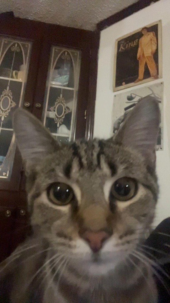 Ethel is a 10 month old female tabby. She may be seen with her sister Honey. She is a tabby, unsure if she has her collar on still or not but if so it’s blue with fish on it and a bell.