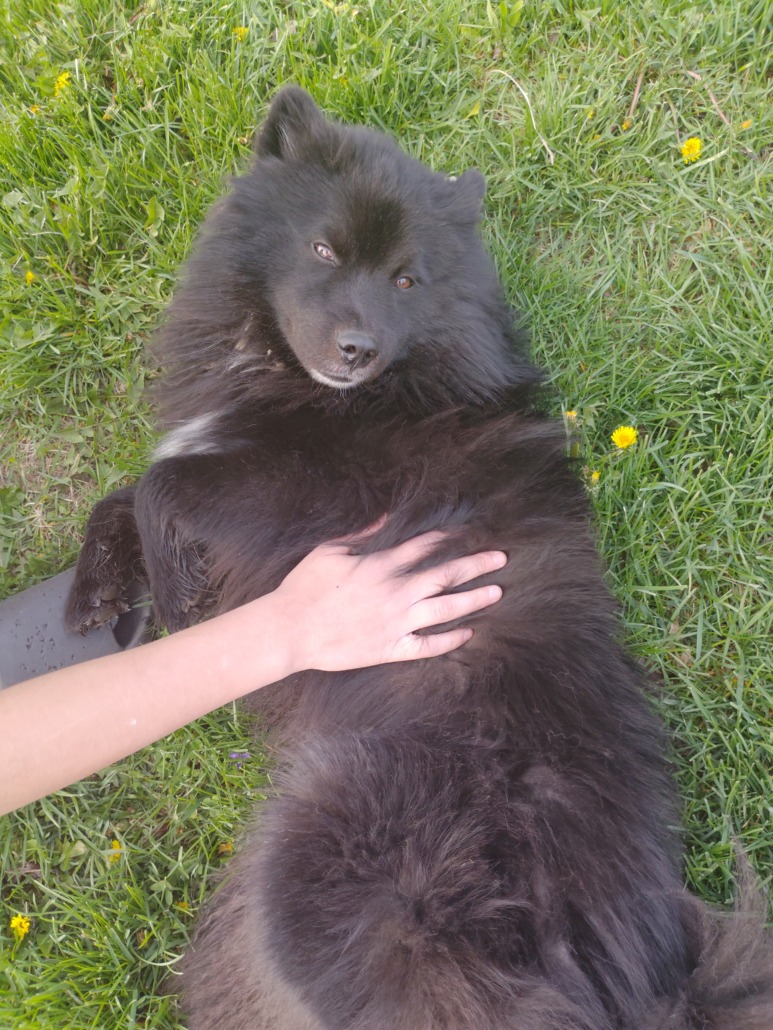 Fluffy black dog, was told from another post his owner is Hispanic, and dogs name is Oso.