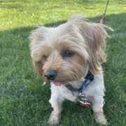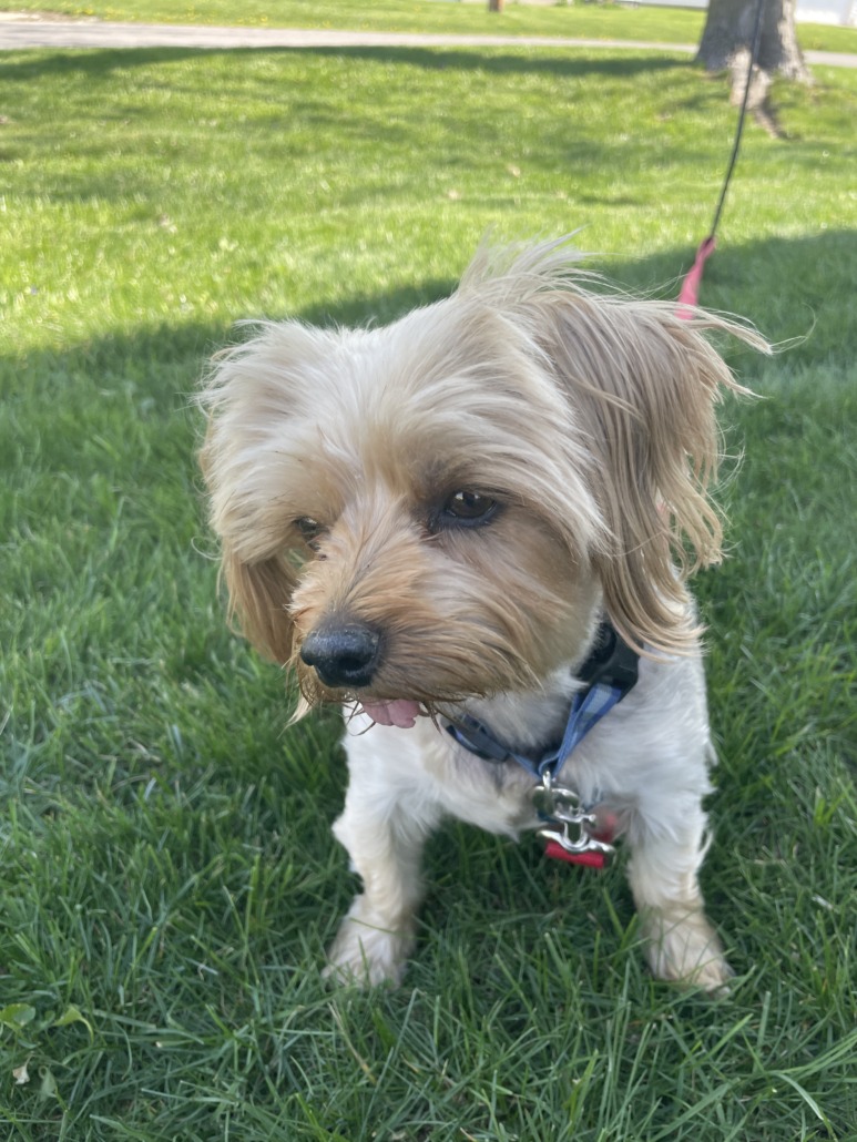Middle age/senior yorkie. Blue and white collar. Must confirm name of animal clinic on rabies tags to claim her. Taking to Indy Humane on Michigan St up north.