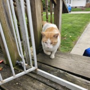 Orange and white male cat. Proof of ownership required.