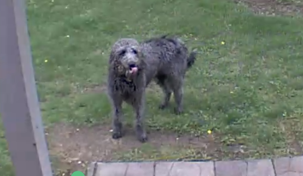 Gray doodle, unsure of sex or age. Cameras alerted me it was in my front yard.
