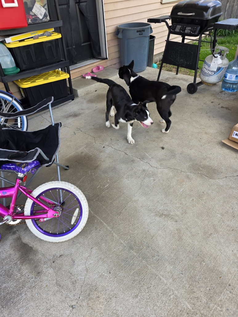 They are 2 puppies a male and female. They were running around I put them in my back yard. I went to run a quick errand and they were gone.