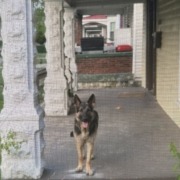 German shepherd found in 1100 block of West 35th. He is lying on porch trying to get inside.