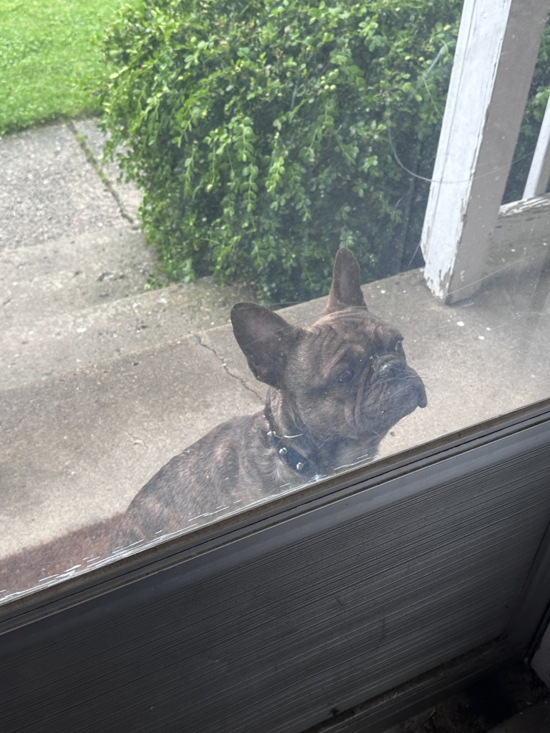 Small brindle French Bulldog
