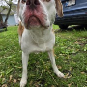 White and brown female pitbull, very friendly and well behaved.