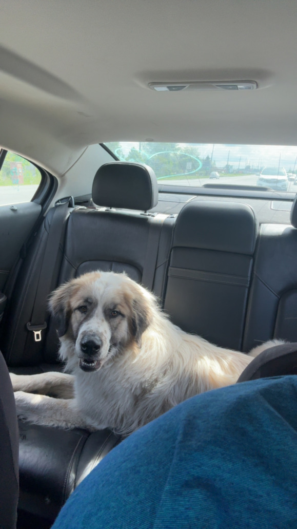 He’s white tall looks skinny. We had got him because his owners were moving. had just got him on May 1 and he’s shy around new people. I was at work, when my fiancé had lost him by accident, he ran out the room behind him and our neighbor let him out the door