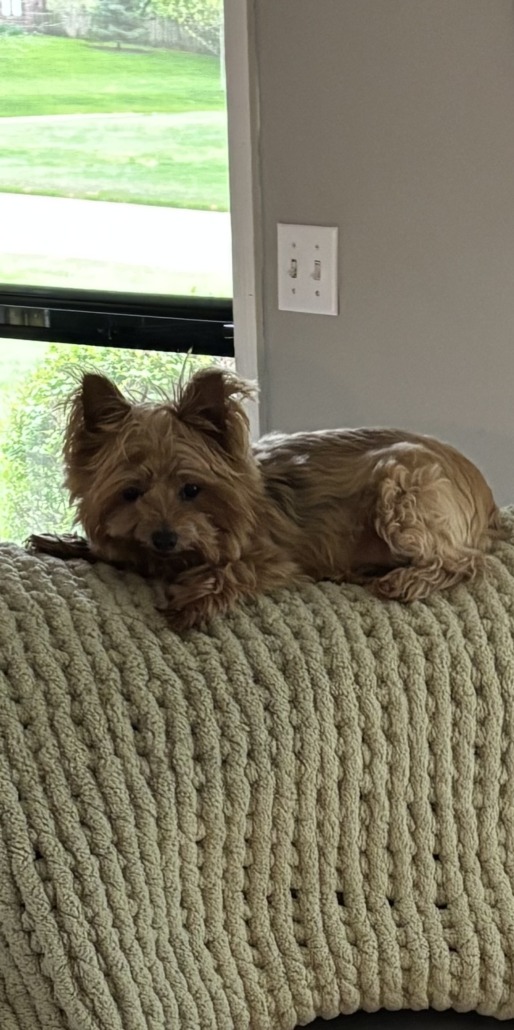Shaggy hair , tan very little he’s 11 years old very sweet!!