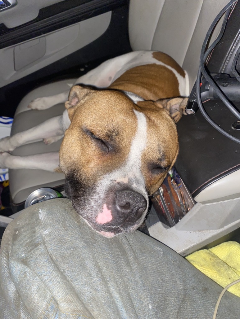 He’s tri color has on a training collar gold chain and black collar. Has a big dot on his back. Very hyper but loving he can shake wave by stand up and spin. He loves food and tennis balls