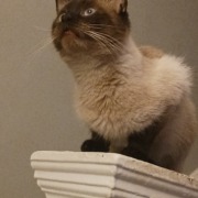Banshee is a small Siamese colored cat. She likes to scream at everything be it for attention or because she’s offended by it.