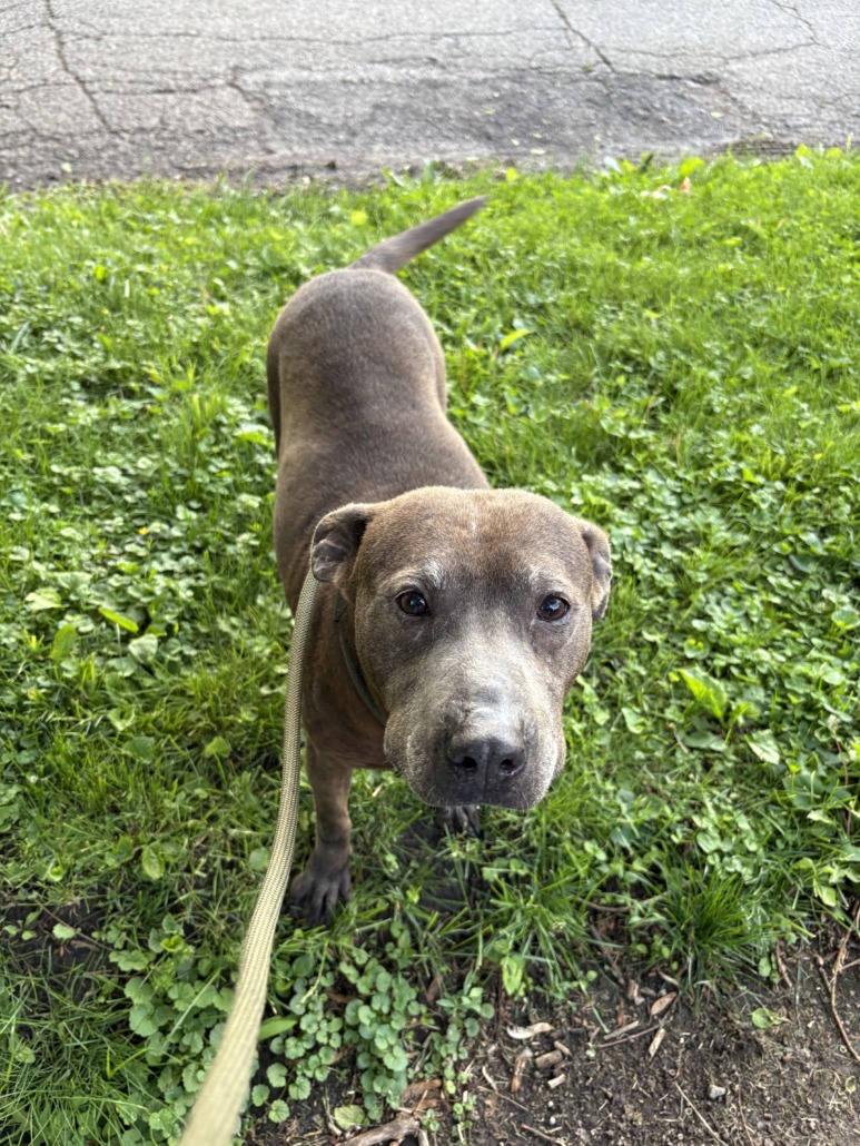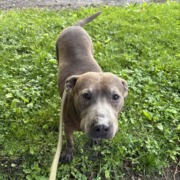 Female pitbull, potentially pregnant. Very sweet and friendly.